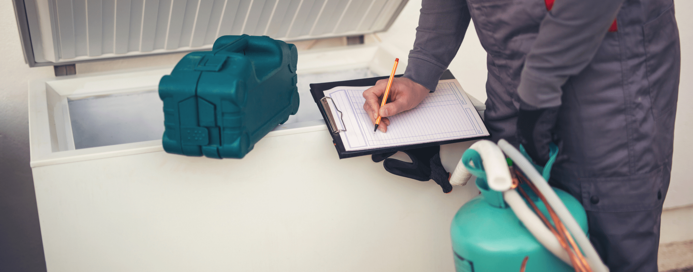 冷蔵・冷凍庫の廃棄時には、適切なフロン類の回収と破壊が法令上必要ですので、まずは弊社までご相談ください。
