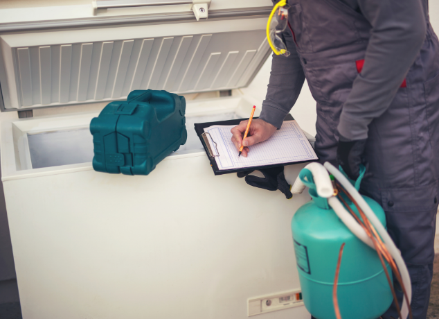 弊社では、廃試薬・廃液の回収や収集運搬のほか、業務用冷蔵冷凍機器などの「第一種特定製品」に使用されるフロン類(冷媒)の回収および冷媒破壊作業の委託も承っております。 冷蔵・冷凍庫の廃棄時には、適切なフロン類の回収と破壊が法令上必要ですので、まずは弊社までご相談ください。